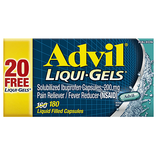 Advil Liqui-Gels provide fast liquid relief, right where you need it most. These liquid-filled capsules get to work in only minutes for powerful relief of headaches, backaches, muscle aches, toothaches, minor arthritis and other joint pain, and aches and pains of the common cold. Advil Liqui-Gels fight pain at the site of inflammation. This pain medication and fever reducer is designed for fast absorption, providing hours of pain relief. Each capsule contains ibuprofen 200mg, a non-steroidal anti-inflammatory drug (NSAID) that is already dissolved, for headache relief, backache relief, menstrual pain relief, joint pain relief and minor arthritis pain relief. More people turn to Advil Liqui-Gels for fast relief than any other liquid-filled pain reliever. By 2022, Advil will feature more sustainable packaging made with 20% less plastic per bottle, to keep nearly 500,000 pounds of plastic out of landfills. Nothing works faster than Advil Liqui-Gels to relieve pain.**Among non-prescription analgesics